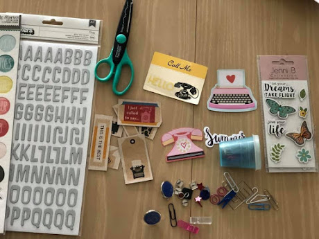 The tupperware container is full of coloured paperclips and I added the deckle scissors to get some use from them.