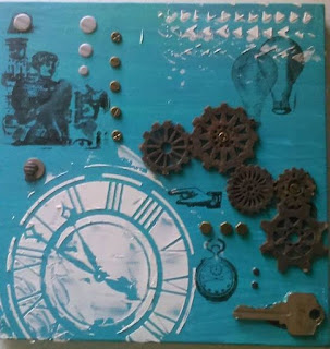 The gesso, inking stamps and gluing the key made the whole thing a rather messy business, but fun!